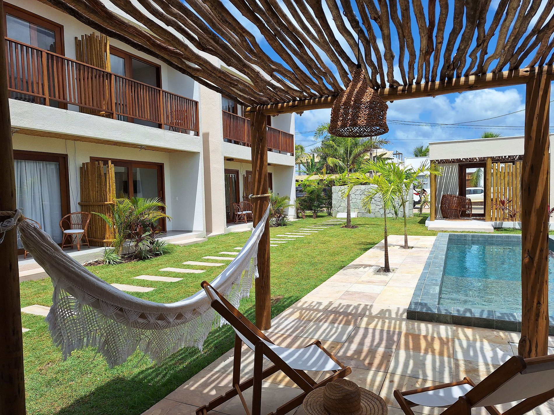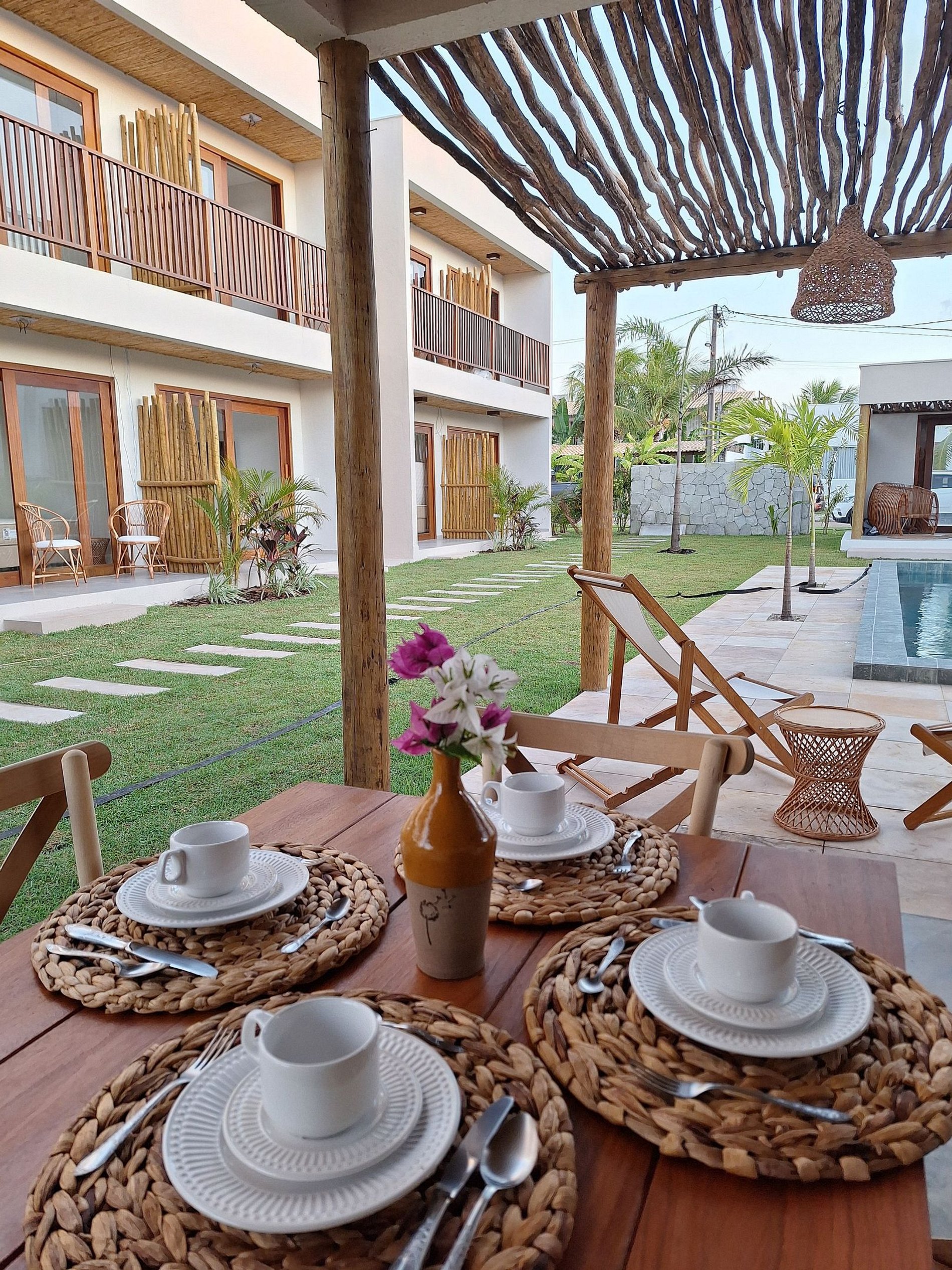 Pousada aconchegante estilo rústico, com café da manhã completo, camas confortáveis, TV, ar condicionado, wi-fi, piscina, hidromassagem, dentro de um condomínio beira mar no paraiso de São Miguel do Gostoso.