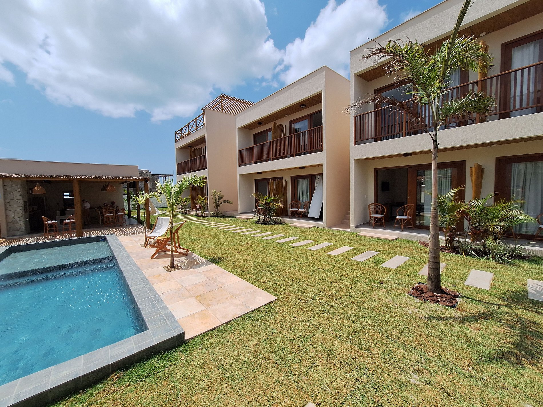 Pousada aconchegante estilo rústico, com café da manhã completo, camas confortáveis, TV, ar condicionado, wi-fi, piscina, hidromassagem, dentro de um condomínio beira mar no paraiso de São Miguel do Gostoso.